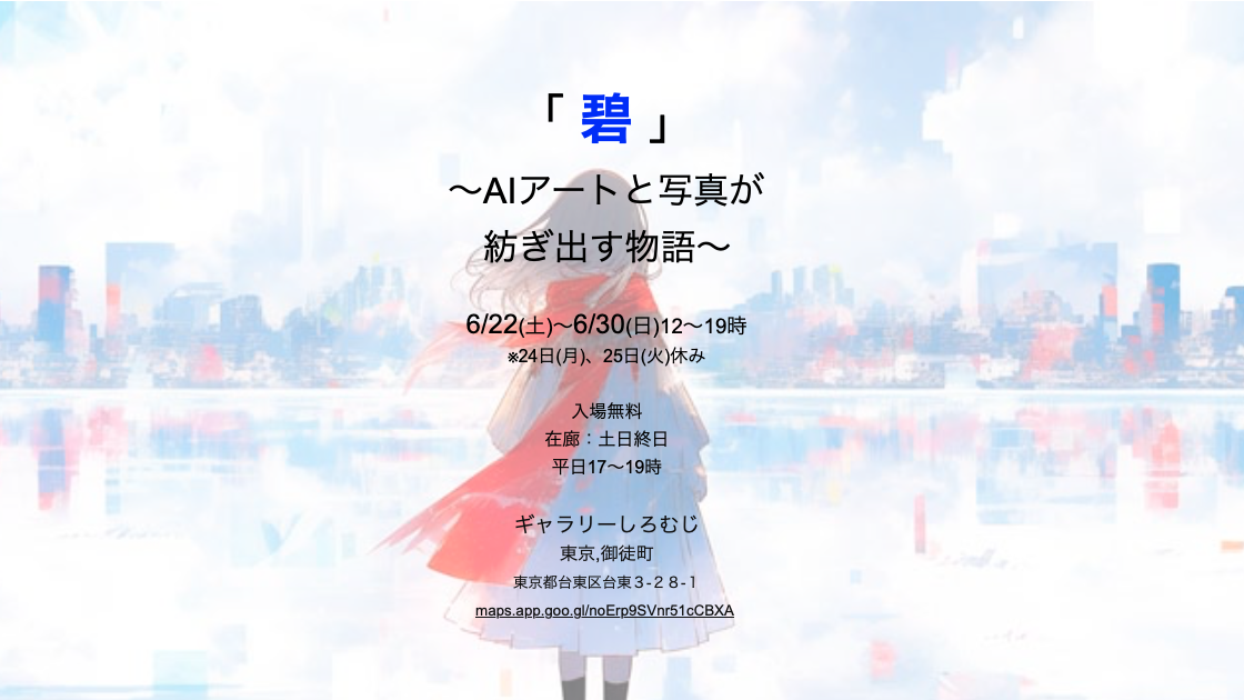 2024.10.12 個展2024「碧」in滋賀https://motonao-kaneko.com/2024/09/15/aiアート&写真個展in滋賀10-12-27/ |